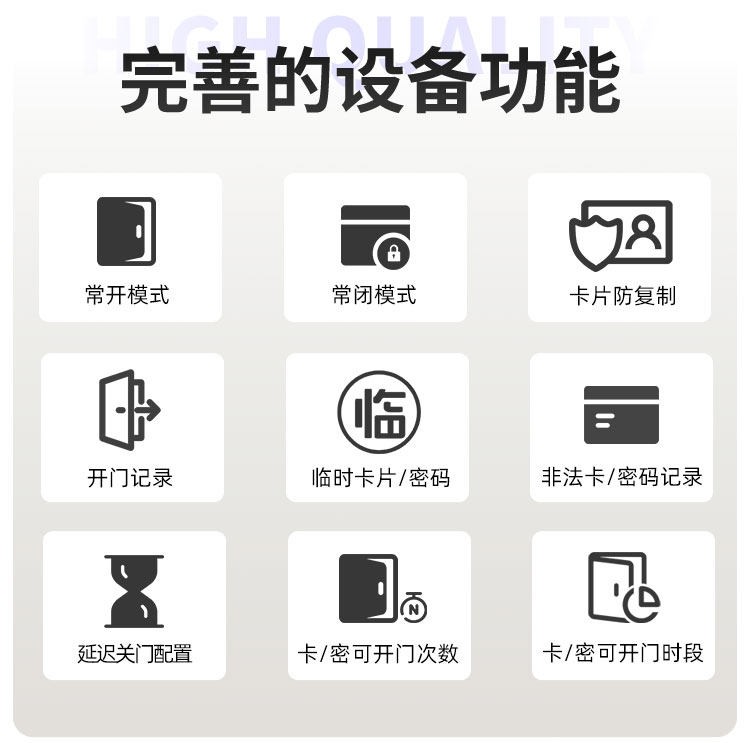 塔城这款智能门锁提供室内门锁和防盗门锁两种选择,其中室内门锁尺寸为 2806521mm,适配 5050 锁体;防盗门锁尺寸为 3657021mm,适配 6068 锁体,可满足不同场景的安装需求。它采用铝合金一体成型搭配钢化玻璃面板打造,兼具坚固耐用的品质与简洁美观的视觉效果。门锁支持蓝牙无线通讯,解锁方式丰富多样,密码、卡片、蓝牙、钥匙四种方式随心选择,满足不同使用习惯与应急需求。其工作温度范围为 - 20~70℃,能适应多数地区的气候条件,采用碱性电池供电,安装更换便捷,是兼具安全性与实用性的门锁选择。